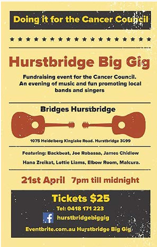 This is the second Hurstbridge Big Gig which raises money for the Cancer Council with six bands performing this year including: