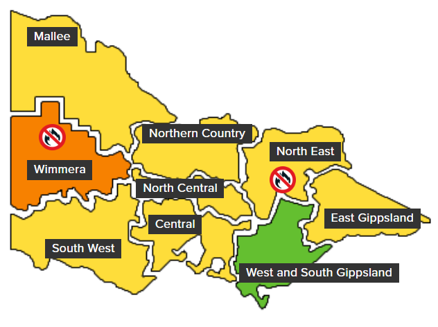 VICTORIA — A Total Fire Ban (TFB) has been declared for the fire weather districts of Wimmera and the North East for tomorrow, Wednesday, January 28, 2026.