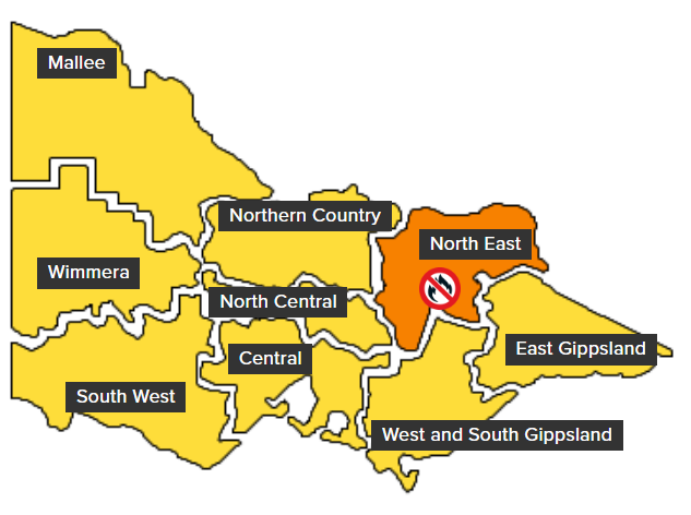 VICTORIA — A Total Fire Ban (TFB) has been declared for the North East fire weather district today, Sunday, February 1, 2026.