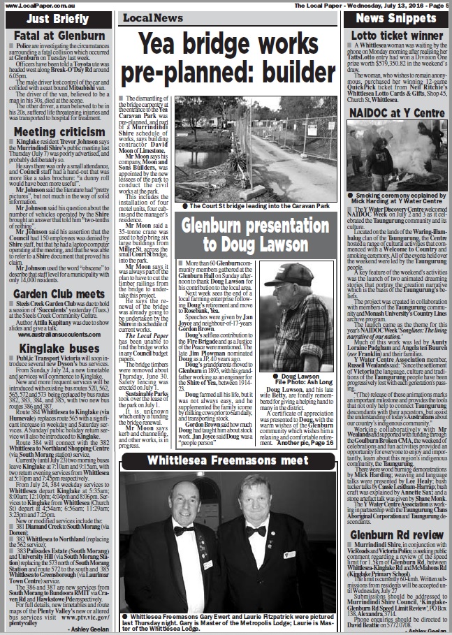 Article first published The Local Paper, Wednesday, July 13, 2016, p.5
