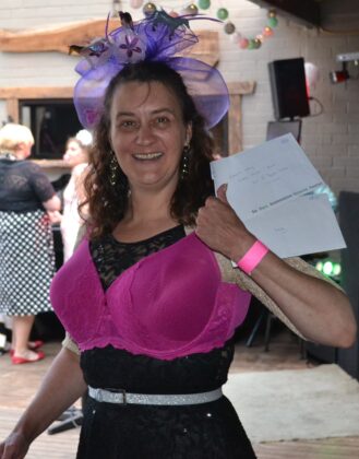 After winning Best Hat, Linda Hamer also won the ‘Guess how many bras in the Barrel’ competition, guessing correctly at 133.