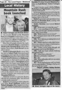 In between being interviewed during the book launch Robert also performed two songs on acoustic guitar and by night’s end was busy signing copies of his book. Robert also read aloud some quotations from Murder at Mountain Rush, reading with a passion and expression not often heard in people reading aloud today.