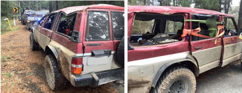 The driver told officers that he’d rolled his vehicle on an unsealed track before being intercepted by police. The unregistered vehicle had substantial damage and was defected on the spot by police.