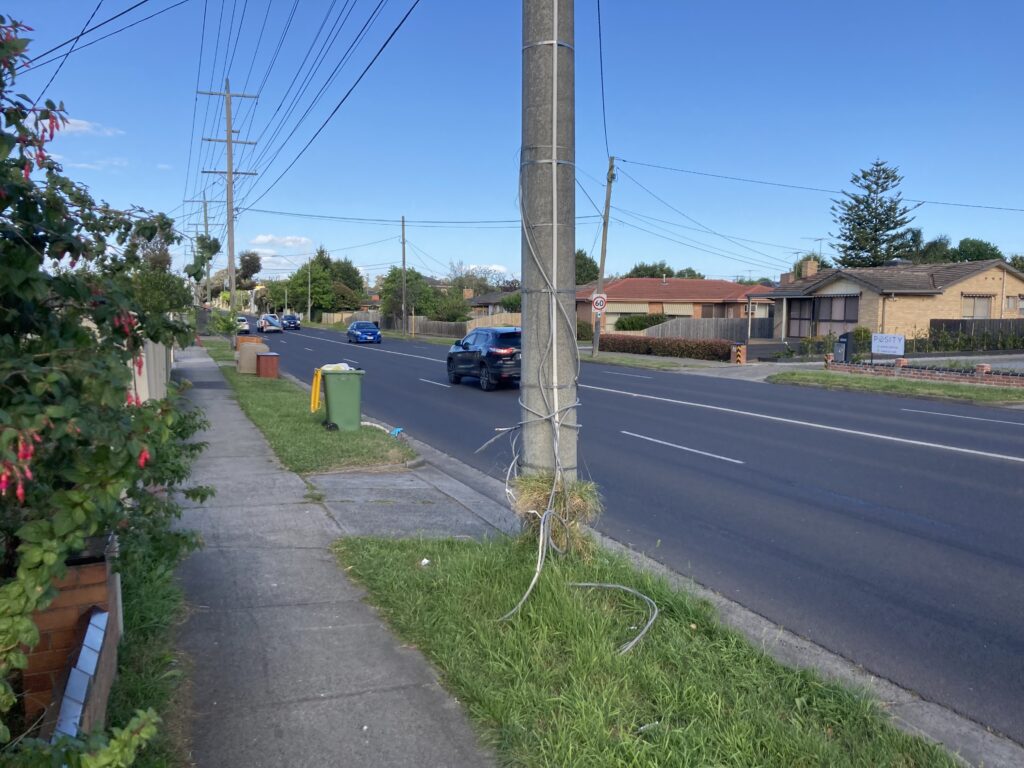 It seemed clear that the old pay TV cables now carrying the NBN had just been cut off at the house – or former house – and then just left dangling in the street.