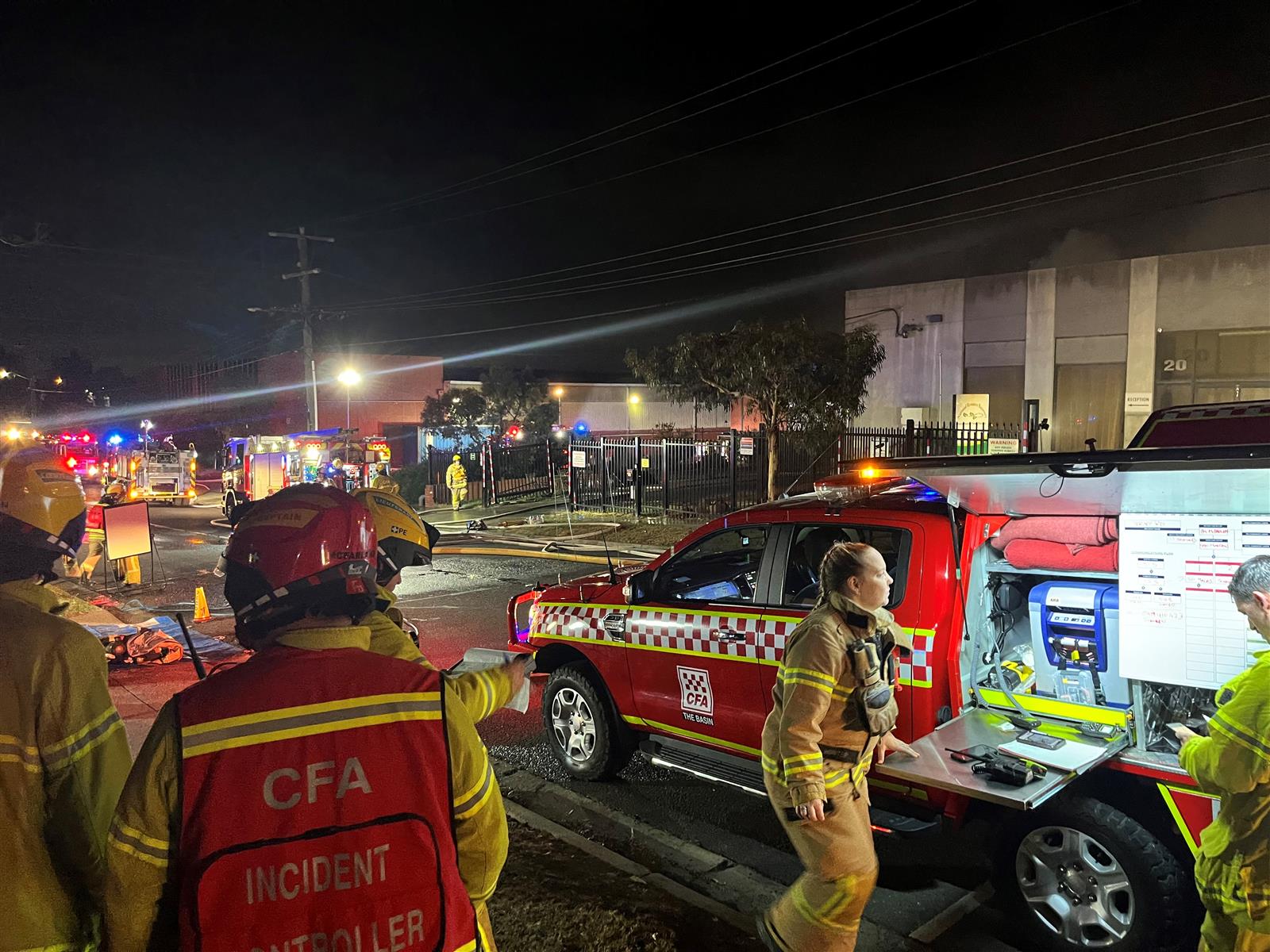 Around 24 CFA and FRV units remain on the scene with support agencies.