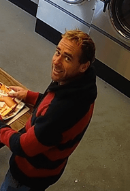 The man is perceived to be Caucasian in appearance, aged in his late-30s to early-40s, with a thin build and poorly dyed blond/orange hair.