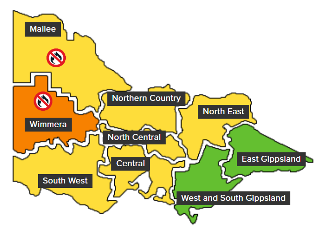 With northerly winds of around 35km/h and a strong south-westerly change forecast for the afternoon, this has elevated the fire danger ratings and risk in the west and north-west of Victoria.