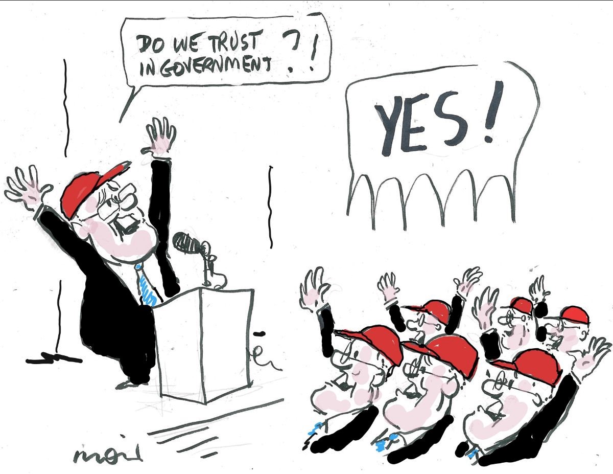 OpinionMoir's View ... Moir’s View … Do we trust in Government? By Alan Moir - Wednesday, August 17, 2022,08:00 0 Do we trust in Government? Share this: Share on X (Opens in new window) X Share on Facebook (Opens in new window) Facebook Email a link to a friend (Opens in new window) Email Print (Opens in new window) Print Moir’s View …DateTuesday, August 23, 2022,08:00In relation toMoir's View ...Moir’s View …DateMonday, August 22, 2022,08:00In relation toMoir's View ...Moir’s View …DateTuesday, December 20, 2022,08:00In relation toMoir's View ...