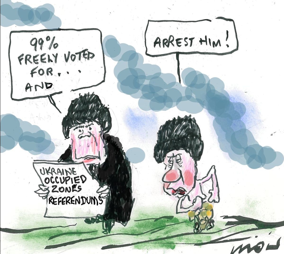 Alan Moir (born 1946) is an Australian caricaturist and cartoonist who was born in New Zealand. He has been the Editorial Cartoonist for the Sydney Morning Herald since 1984, and previously The Bulletin and Brisbane's Courier-Mail. His work on international events is also syndicated regularly through The New York Times Syndicate. Alan's credits include being six-time winner of "Australian Editorial Cartoonist of the Year", a Churchill Fellowship in 1999, Walkley award for Political Cartooning in 2000 and 2006 and the UN Award for Political Cartooning 1994. Inducted into "The Australian Cartoonist' Hall of Fame" 2018. In 2019 a cartoon on global warming was published in "The Oxford Illustrated History of the World" His work is held in several collections including the National Library of Australia, the National Museum of Australia, the National Library of New Zealand, the State Library of New South Wales, the State Library of Queensland, the State Library of Victoria, and the Private Collection of Kofi Annan (the former Secretary- General of the UN). In 2006 during the aftermath of the Danish Prophet cartoon controversy, he was invited to the Australian Senate to give a lecture on the history of political cartooning. He has published about a dozen books of cartoons over the years, and has been included in many others. He has given talks on the History of Western Political Cartooning in Sydney and Canberra, NZ (Auckland and Wellington), India (New Delhi, Trivandrum, Kochi)