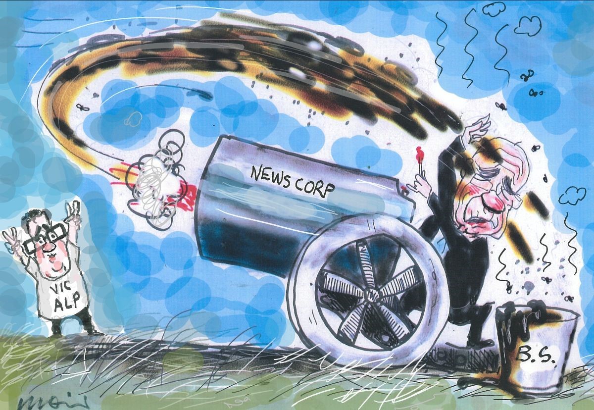 Alan Moir (born 1946) is an Australian caricaturist and cartoonist who was born in New Zealand. He has been the Editorial Cartoonist for the Sydney Morning Herald since 1984, and previously The Bulletin and Brisbane's Courier-Mail. His work on international events is also syndicated regularly through The New York Times Syndicate. Alan's credits include being six-time winner of "Australian Editorial Cartoonist of the Year", a Churchill Fellowship in 1999, Walkley award for Political Cartooning in 2000 and 2006 and the UN Award for Political Cartooning 1994. Inducted into "The Australian Cartoonist' Hall of Fame" 2018. In 2019 a cartoon on global warming was published in "The Oxford Illustrated History of the World" His work is held in several collections including the National Library of Australia, the National Museum of Australia, the National Library of New Zealand, the State Library of New South Wales, the State Library of Queensland, the State Library of Victoria, and the Private Collection of Kofi Annan (the former Secretary- General of the UN). In 2006 during the aftermath of the Danish Prophet cartoon controversy, he was invited to the Australian Senate to give a lecture on the history of political cartooning. He has published about a dozen books of cartoons over the years, and has been included in many others. He has given talks on the History of Western Political Cartooning in Sydney and Canberra, NZ (Auckland and Wellington), India (New Delhi, Trivandrum, Kochi)