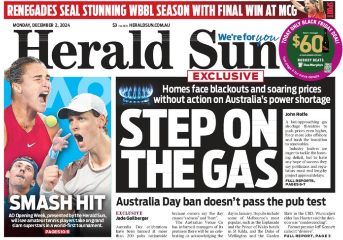 The articles were splashed across all the Murdoch tabloids, and were not an “exclusive” nor a “special report,” nor an “investigation” with homes to face “blackouts and soaring prices,” according to the Herald Sun ‘exclusive.’