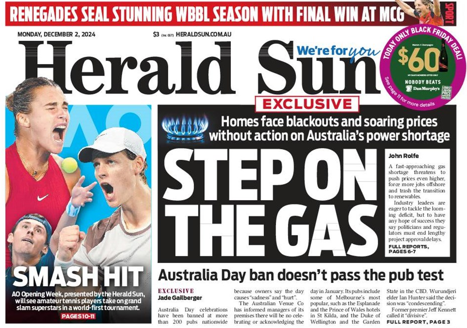 Yesterday, Rupert Murdoch’s Australian capital city mastheads splashed a story across the front page. The problem though, is that it was not news at all, but an advertorial for the gas industry dressed up as news.
