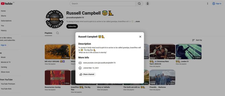 Little is known about 53-year-old Russell John Campbell, apart from his own postings on his YouTube and Facebook pages, where he refers to himself as a “content creator” and the “Grand Roo”.