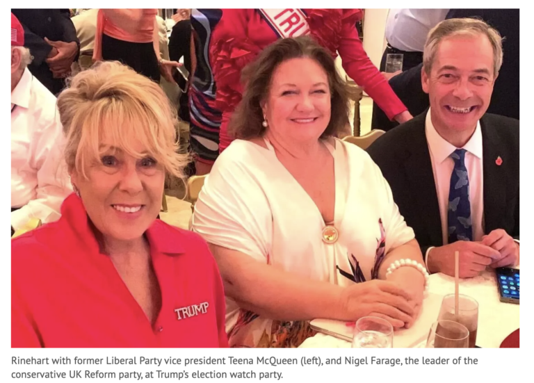 The US Trumpettes say this: “She’s an incredible woman … She does so much good. I’m so impressed with her through the years. To me, she’s sort of like a female Donald Trump,” Holt Kramer said of Australia’s richest person.” Rinehart is a major supporter of Peter Dutton.