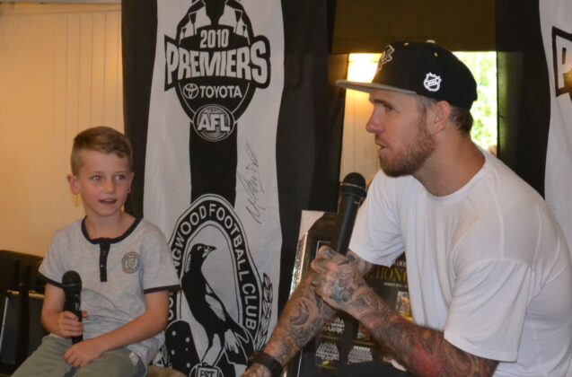 Former Collingwood AFL footballer, Brownlow medallist and All-Australian, among other accolades, Dane Swan made his first official public appearance since leaving Channel 10’s “I’m a celebrity get me out of Here” in the South African Jungle on Saturday (18/3) afternoon at a Kinglake Football/Netball club function hosted by the Kinglake Pub.