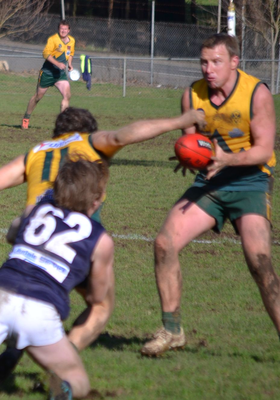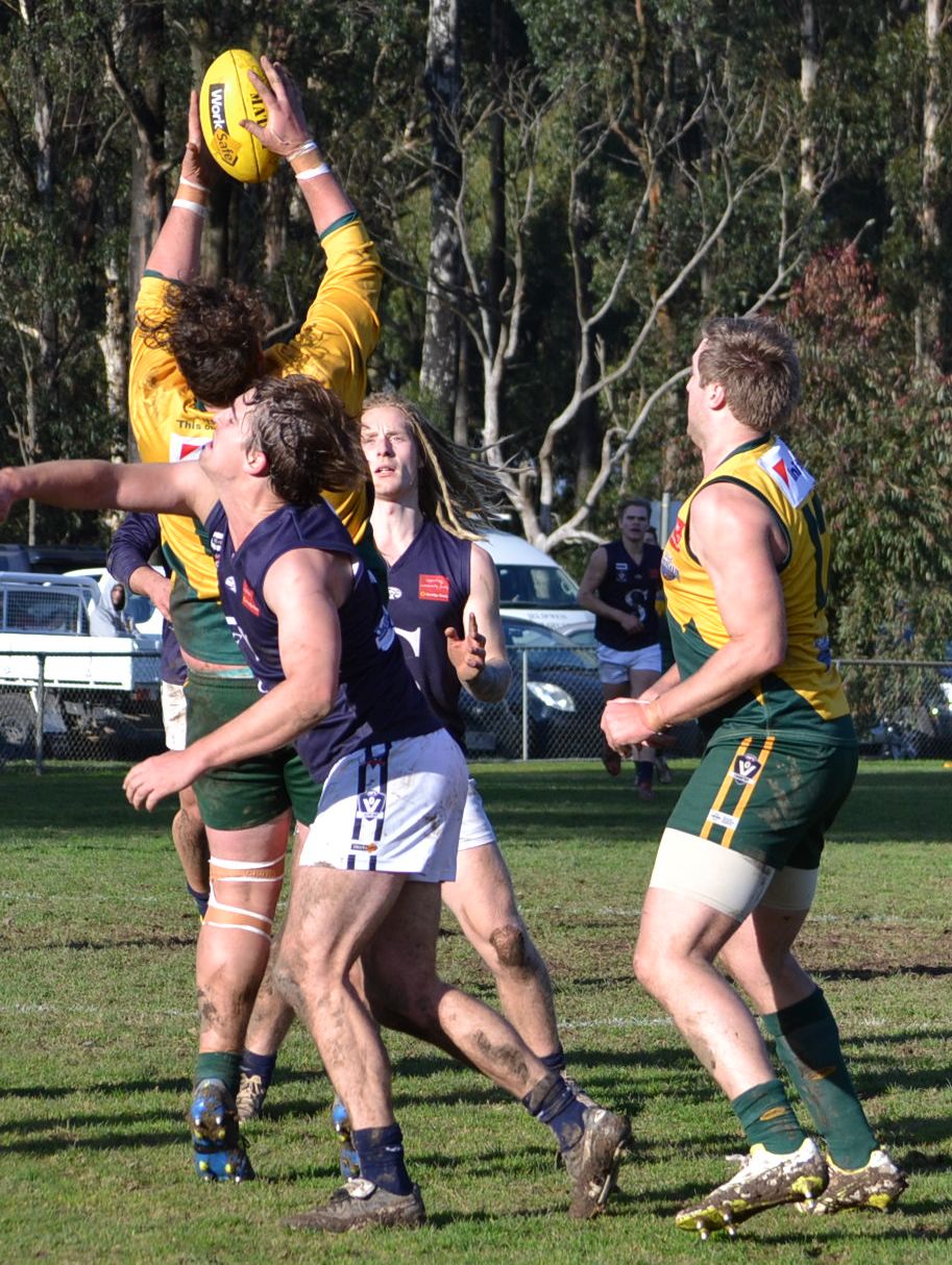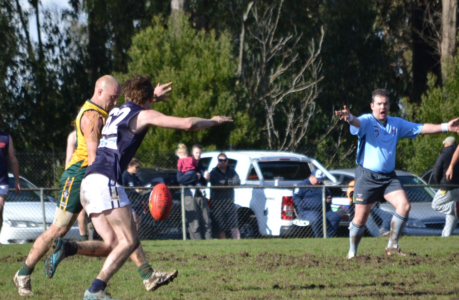 Kinglake playing Seville has been some tough affairs in the past, with the field umpires actually abandoning a game, at Kinglake, on July 10, 2010, after persistent on-field fighting. (For, according to the YVMDFL, the only to in their history). Whilst Saturday’s game was a tough game, the fighting was played out this time with the football.